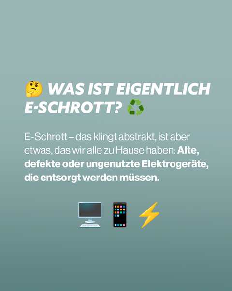 E-Schrott - das klingt abstrakt, ist aber etwas, das wir alle zu Hause haben: Alte, defekte oder ungenutzte Elektrogeräte, die entsorgt werden müssen.